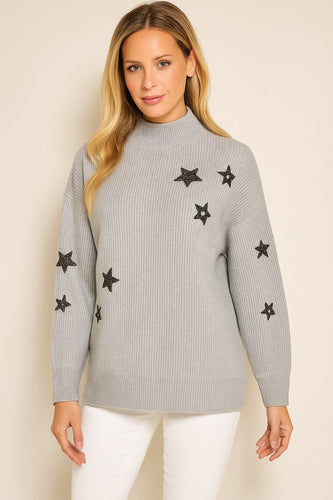 Embroidered Sleeve Top with Rhinestones - Black Square