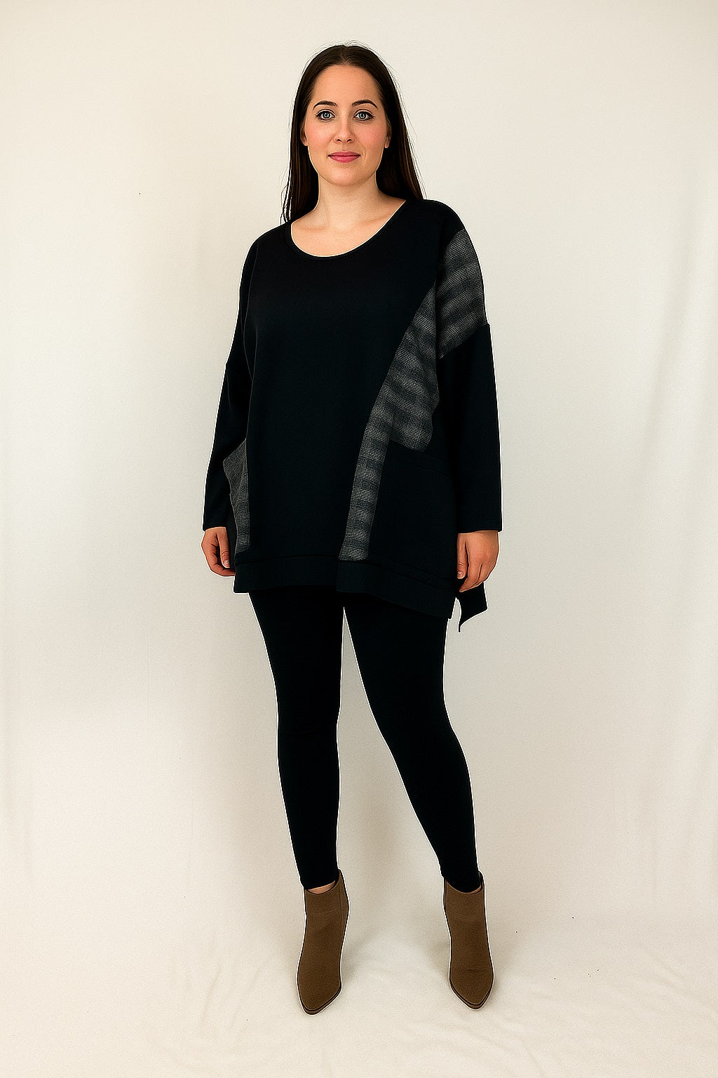 Tunique surdimensionnée avec insertions de tissu à carreaux et à grandes poches - Marque : May Moda