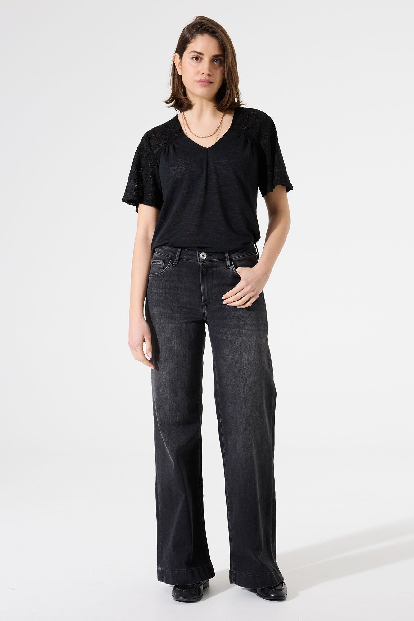 Haut ample à manches courtes avec insertions de dentelle avant et arrière, encolure en v - Marque : Garcia, marque hollandaise